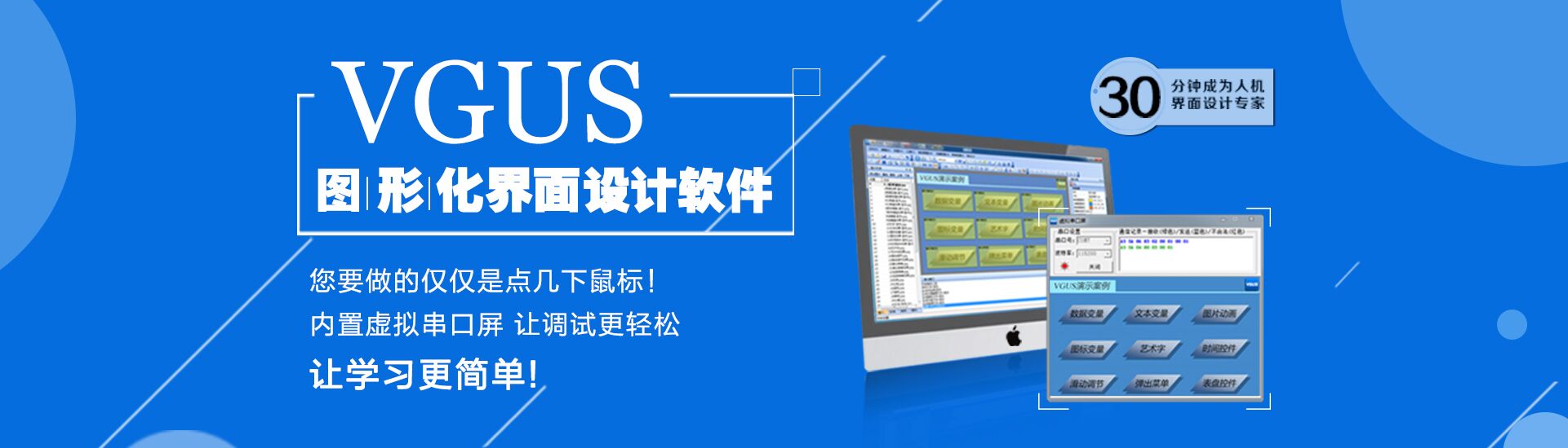 秉持讓人機交互設計更簡單的理念,成功研發(fā)了工業(yè)組態(tài)軟件VGUS(Viewtech Graphical User Software)。該軟件提供了一種圖形化的人機交互功能設計方法,打破了傳統的描點、畫線的界面設計模式,降低了儀器設備的人機交互系統設計難度,解決了人機交互相關工作的重復性設計問題,能夠讓設計人員把更多的精力集中于產品關鍵技術研發(fā)上,專心于專業(yè)產品的開發(fā),提高了儀器設備的開發(fā)效率。